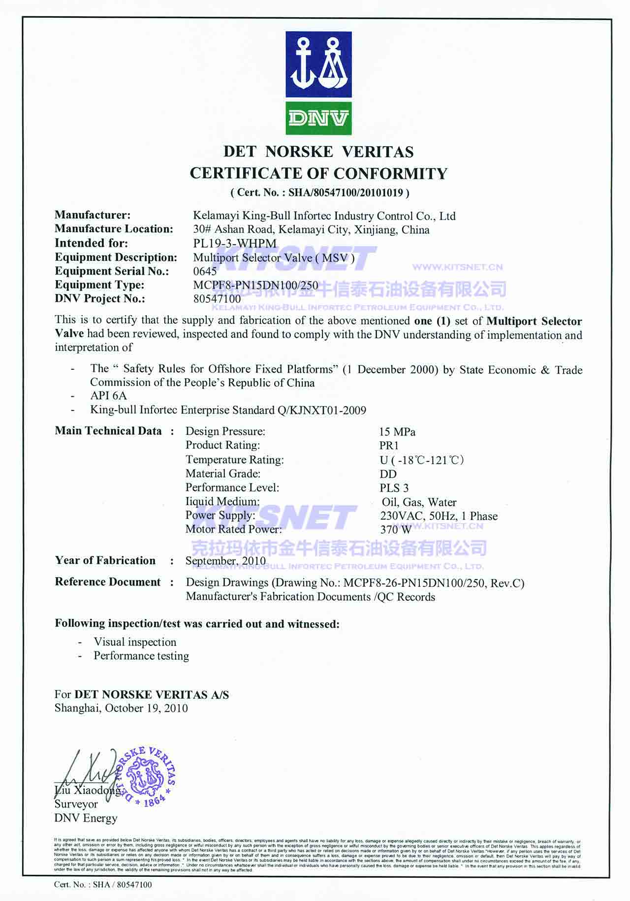 DNV Certificate of MSV